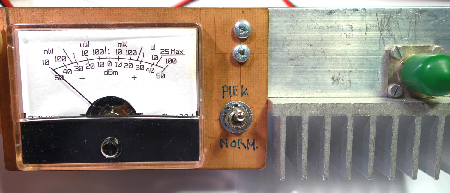 Level meter (op basis van een AD8307) met ingebouwde dummy en groot bereik, 75dB (Wattmeter). Met onder andere: schema, PCB en schaal voor draaispoelmeter achtergrond.