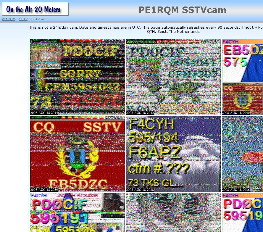 Amateurs van over de hele wereld kunnen dan kijken, of hun plaatje bij jou is binnengekomen. En zo is er inmiddels al een hele rij aan amateurs over de hele wereld, die een SSTVcam hebben. Kijk maar eens op "WorldSSTV.com" Dit is dus ook een erg leuke DX monitor voor bepaalde banden. Zelfs als je zelf geen SSTV bedrijft!