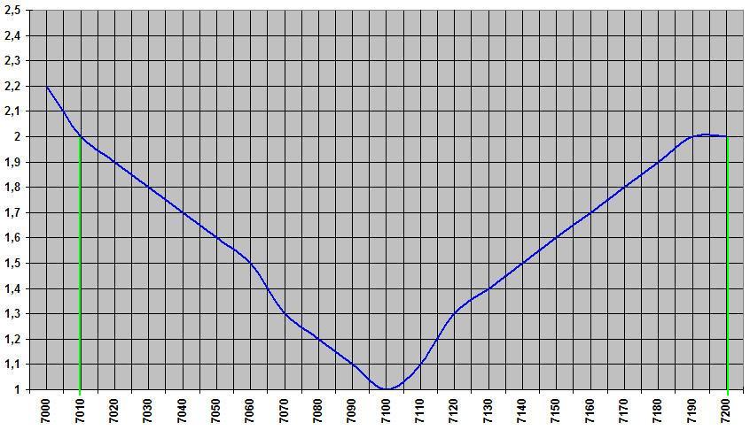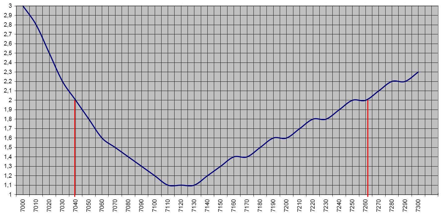 Hieronder tref je de SWR grafiek aan voor 40 meter.