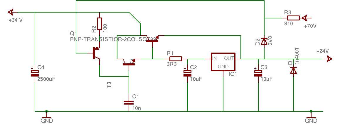 Ik snap wat je bedoelt maar of ik dat kan ontwerpen is iets anders :crybaby: : hierbij een poging mbv een 7824 en de BDY20 power NPN tor voor de zekerheid (uiteindelijk loopt de 12V ook via de 24V). De pnp een BCY72, de npn een bsx20