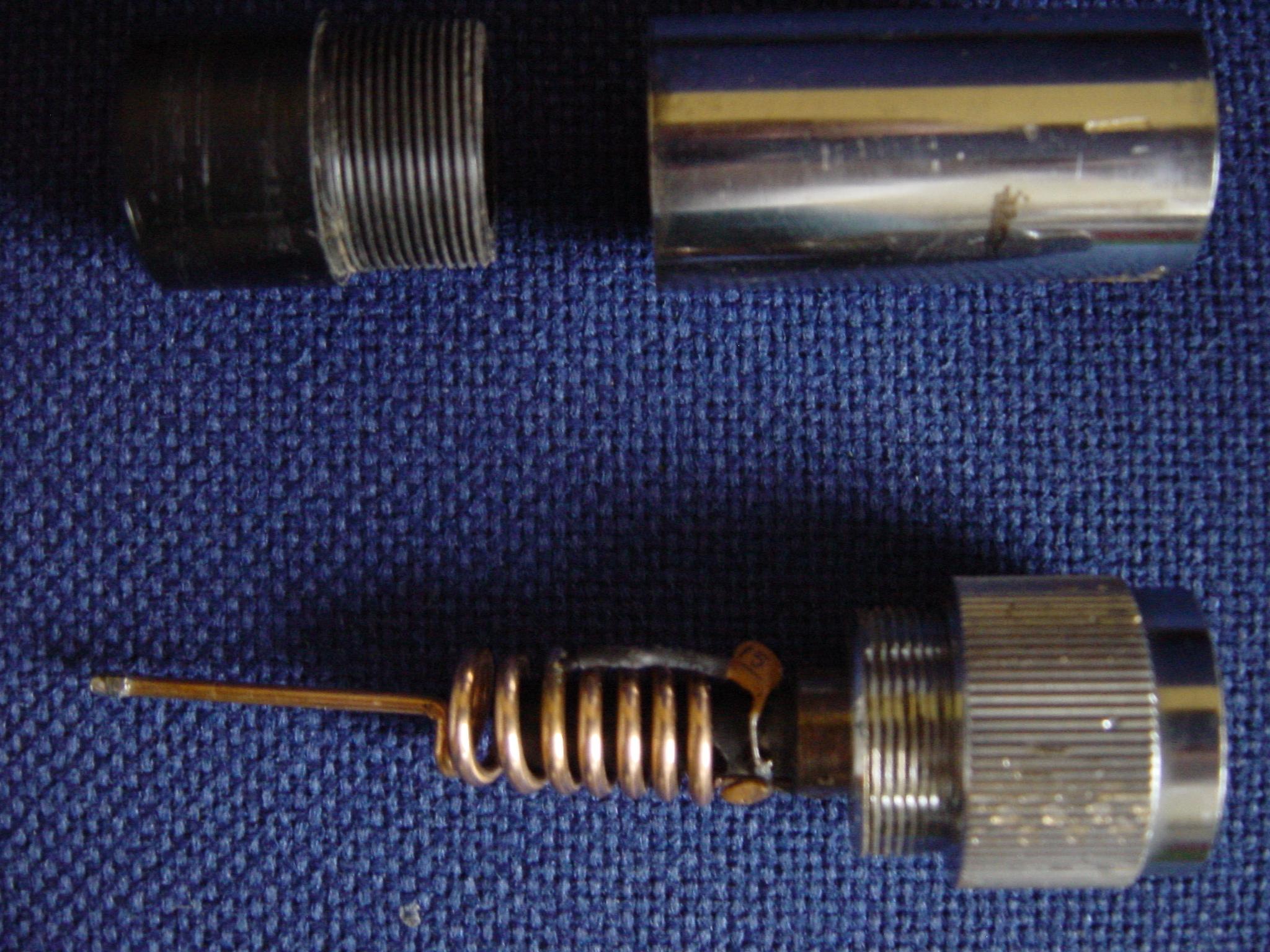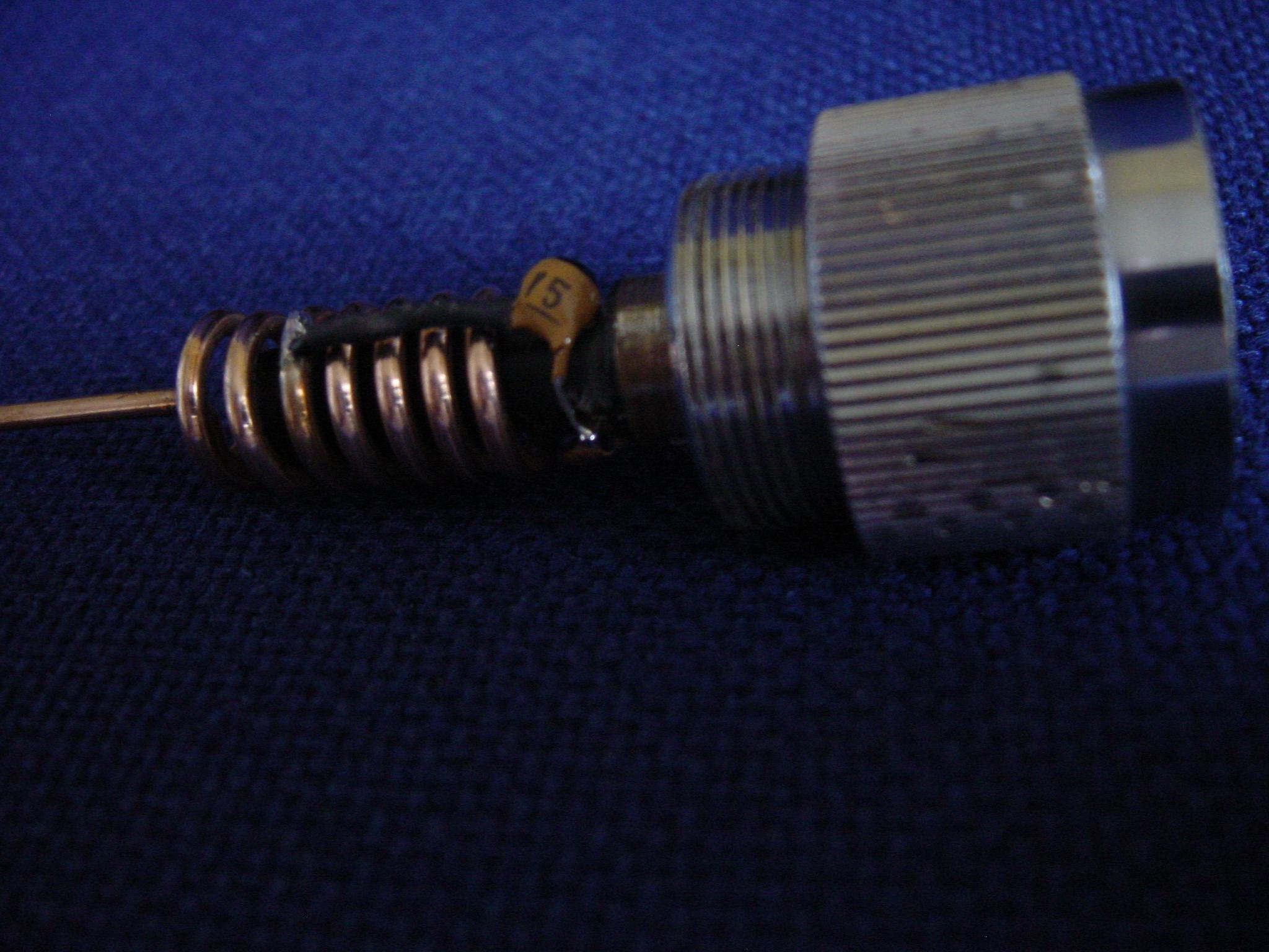 In de basis van deze antenne zit een aanpassings netwerk in de vorm van een spoel met aftakking voor het 50 ohms punt.