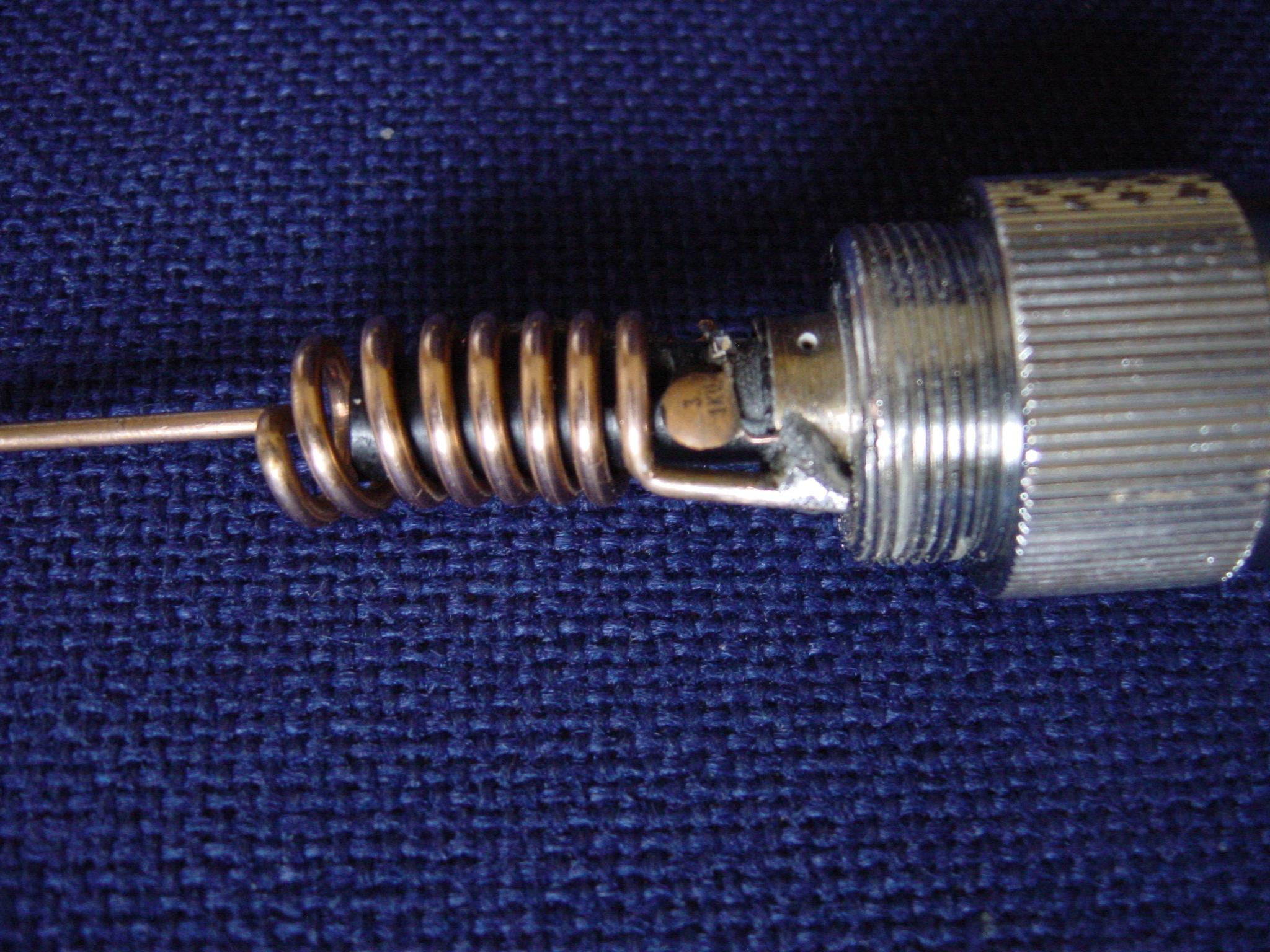 Aan de "warme" kant van de coax voeding hangen twee condensatoren waarvan ik van één van die de waarde nog kan achterhalen. Die waarde van C2 bedraagt 3 picofarad/1KV en ligt tussen de binnenkern van de coax en de afscherming.