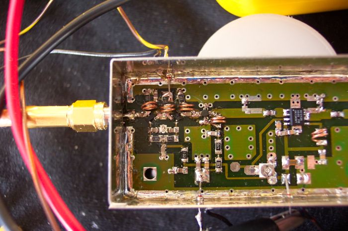 Deze versterker is opgebouwd rond de ERA5 MMIC en de RF2126 (final).