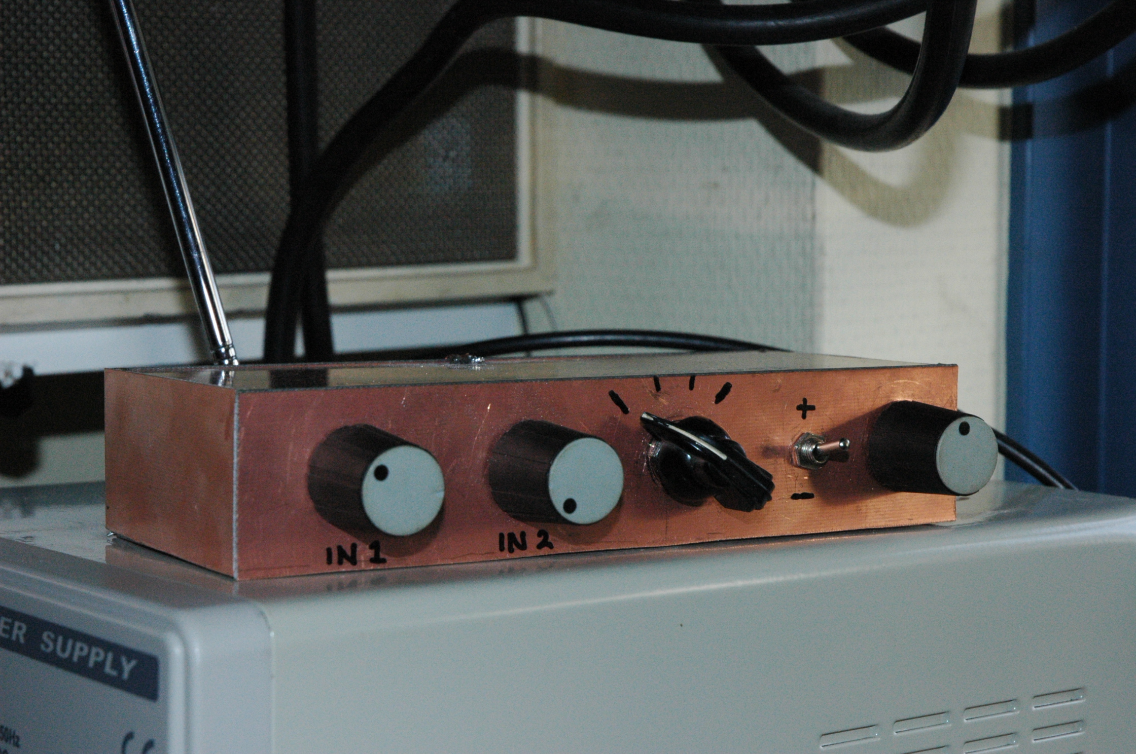 Ik heb de schakeling van deze site gemaakt, erg eenvoudig en de werking was boven verwachting. Nu heb ik niet echt last van QRM maar hij is dan ook voor een ander bedoeld. Mijn test is op dit moment gebaseerd op het cancelen van zelf geproduceerde QRM. Ik heb daarvoor een halogeenlamp naast de antenne gezet en vastgepakt wat een enorme brom in de ontvanger (murphy 62B LG/MG/KG) opwekt. Zo sterk dat het zelfs Radio Maria (niet zo erg) en Arrow (wel zonde) onhoorbaar maakt. Na wat draaien aan de potmeters en de standenschakelaar lukte het om de halogeen brom bijna 100% weg te draaien.